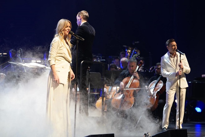 Puis les deux artistes sont apparus vêtus de costumes blancs et joignant leurs cordes vocales majestueusement à l’orchestre ont interprété “Live and let die”, la dernière chanson du spectacle.