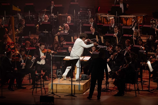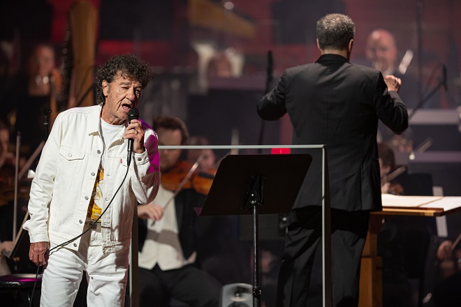 C’est tout un spectacle que nous offre Robert Charlebois à la Maison Symphonique de la Place des Arts avec Charlebois Symphonique. Vêtu d’un jeans et jacket blanc, décontracté comme toujours, le chanteur-compositeur-interprète semble très à l’aise accompagné de l’Orchestre symphonique de Montréal et son choeur impeccablement bien placés derrière lui.