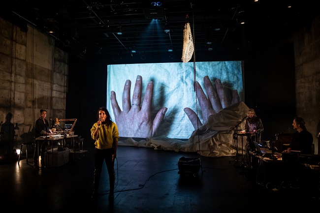 La performance, qui dure plus d’une heure, promet une expérience sensorielle immersive et conviviale. Frédéric Auger, à la guitare et à l’harmonium, incarne les paysages, Karine Sauvé, au chant et aux pédales d’effets, prend en charge les instruments à vent, Julie Vallée-Léger, à la table de dessin et au dispositif vidéo, crée les ambiances, tandis que Claudine Robillard, narratrice et maîtresse de la transformation de l’espace, guide les parcours. « Dérive de nuit » enveloppe et berce le public, procurant la sensation d’avoir reçu un merveilleux massage.