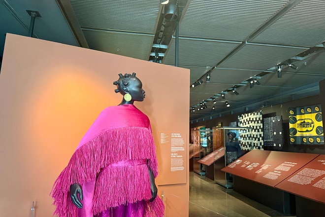 Accompagnés par un tam-tam et bercés par une musique africaine, les visiteurs découvrent le savoir-faire africain et  comment la mode africaine s’est imposée sur la scène mondiale.