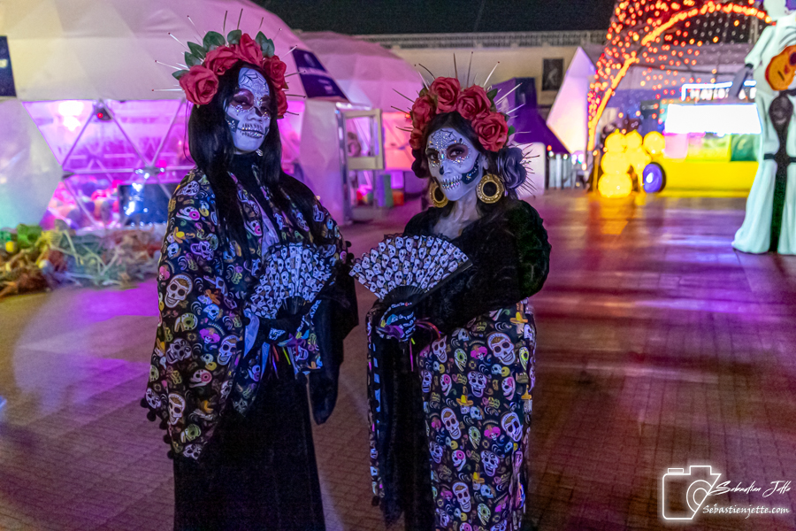 Mais FESTILUMI, ce n’est pas seulement un spectacle — c’est une expérience qui évolue avec les saisons. On démarre en mode Halloween, avec des décors mystérieux (citrouilles, araignées géantes, squelettes) et une ambiance sonore saisissante, avant de migrer, dès novembre, vers la magie chaleureuse du temps des Fêtes : flocons, guirlandes, lumières dorées et univers neigeux.