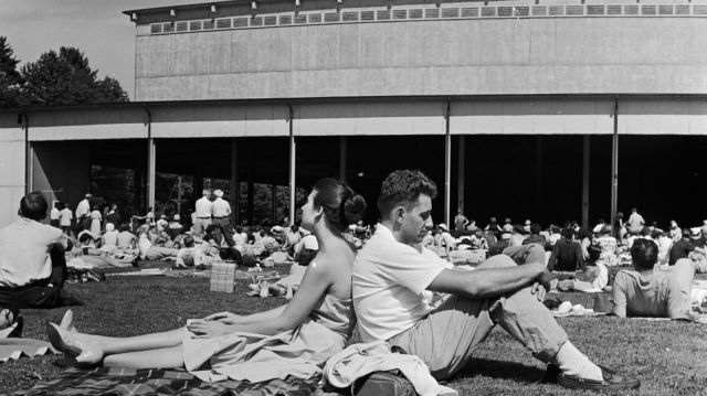 En 1934, un groupe de «spectateurs» épris de musique organisé pour les membres du New York Philharmonic présente quelques concerts en plein air ici, dans les Berkshires. Peu de temps après, Serge Koussevitzky et le Boston Symphony Orchestra accepteront de se produire et de donner leur premier concert à Tanglewood en août 1936. Le reste appartient à l’histoire.
