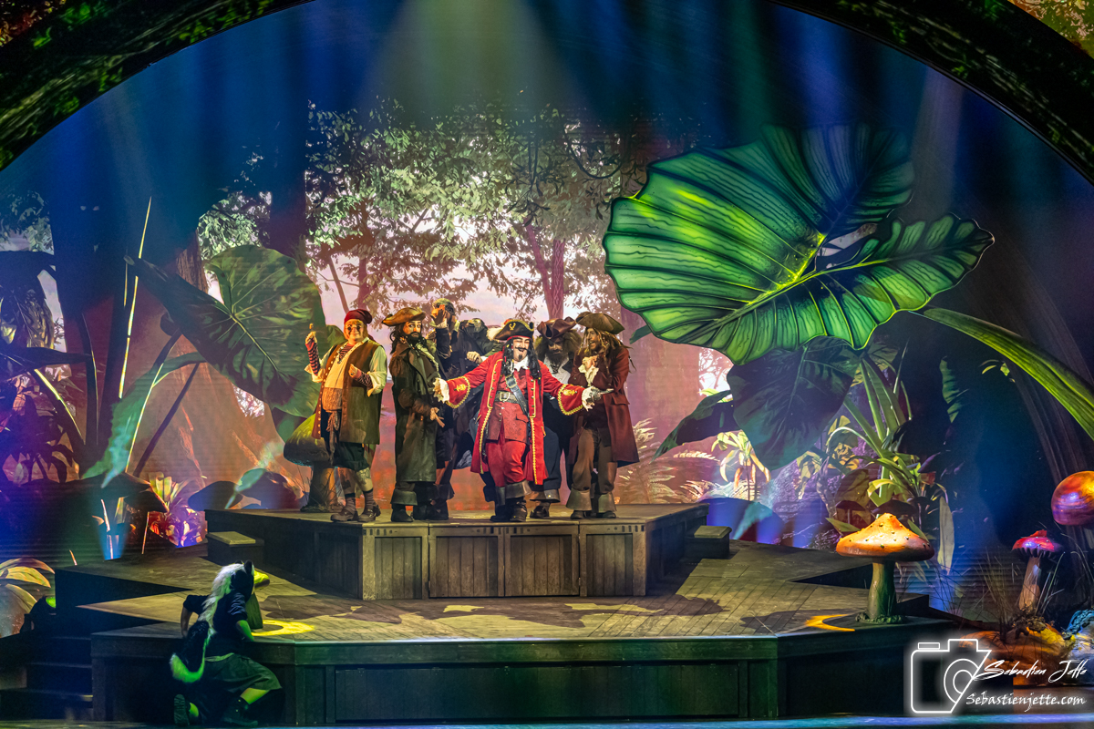 Les décors et les costumes, véritablement enchanteurs, ont impressionné le public. J’ai particulièrement apprécié les projections qui enrichissent les décors, avec un coup de cœur pour le bateau de Crochet. Les éclairages étaient parfaits, sublimant chaque décor. On retiendra particulièrement l’effet lumineux lors de l’arrivée de Peter Pan ou de ses envols avec les enfants.