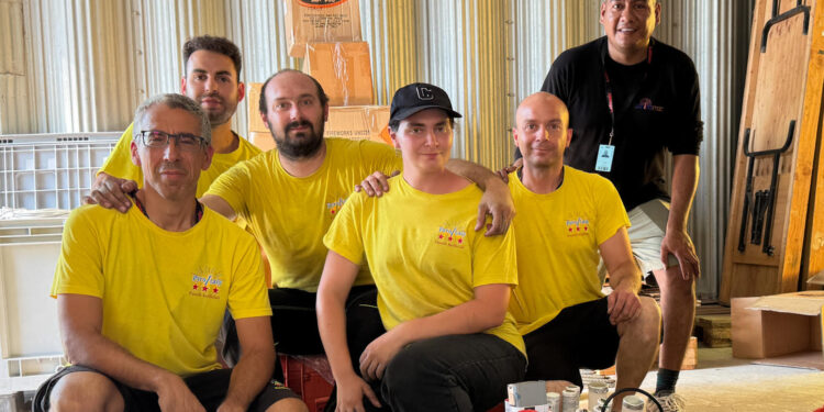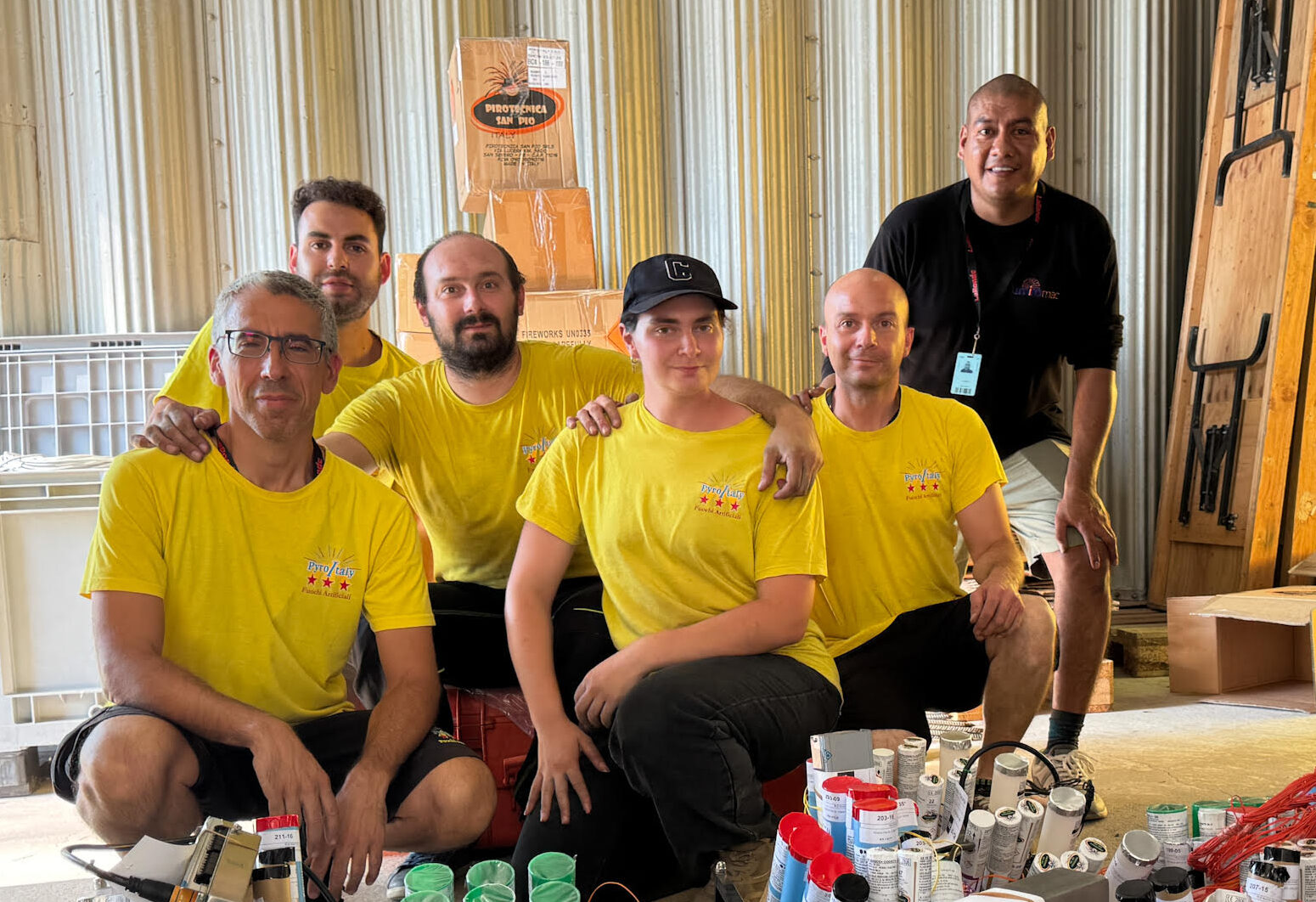 De gauche à droite : Federico Tibaldi, Gabriele Interdonato, Marco Bottazzi, Chiara Bottazzi, David Mucciarini et Luis Rodriguez devant quelques-uns des 2000 mono-coups qui seront tirés ce soir