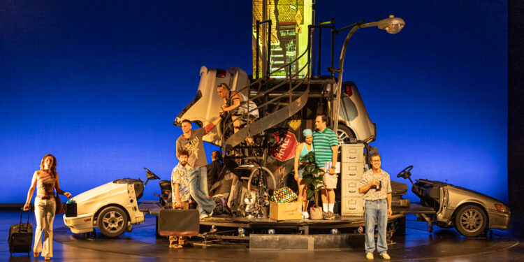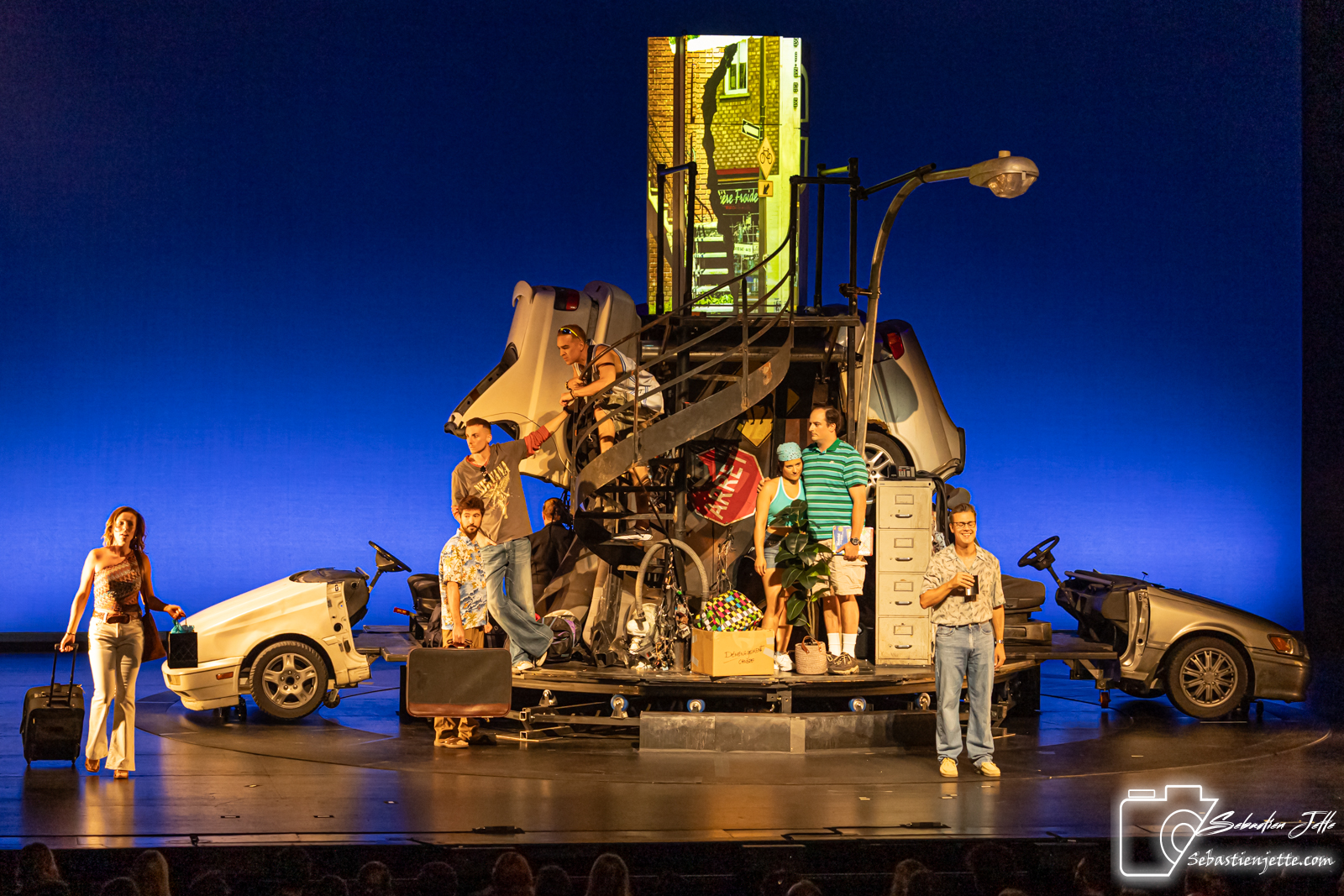 L’attente était immense pour cette adaptation, vingt-trois ans après la sortie du film qui a marqué le cinéma québécois. Dès les premières secondes, le décor ingénieux se révèle : trois carrosseries de voiture, au centre de la scène, pivotent pour faire voyager les spectateurs. Cette mise en scène astucieuse permet de suivre les trois trios de personnages dans leur périple sur l’autoroute 20, tout en recréant l’ambiance intimiste du film.