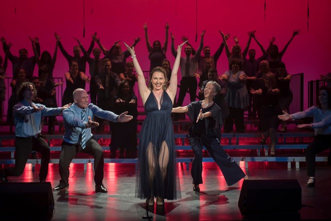 Bob: On continue la même chose, mais on déménage au Théâtre Concordia en 2014 (l’endroit du spectacle de 2025). On s’aperçoit qu’on a des éclairages, des rideaux, des toiles. La musique qu’on fait provient du théâtre musical, ce qui n’est pas un art statique, alors on est devenu plus théâtral à partir de là. On ajoute des musiciens, maintenant 5 ou 6. On a eu besoin d’un technicien de son, d’un éclairagiste, et on a demandé à Jonathan (Patterson) de venir chorégraphier 2 ou 3 chansons. Un autre niveau pour le groupe.