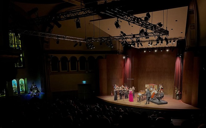 Dirigé par Mathieu Lussier — qui est aussi à la tête du Festival d’été du Domaine Forget de la fort belle ville fluviale de Sainte-Irénée, les instrumentistes d’Arion ont étayé le propos de ce chef en ce qui a trait à un bien beau Noël sous la férule de l’Occupant britannique ceint de la couronne du roi George III.