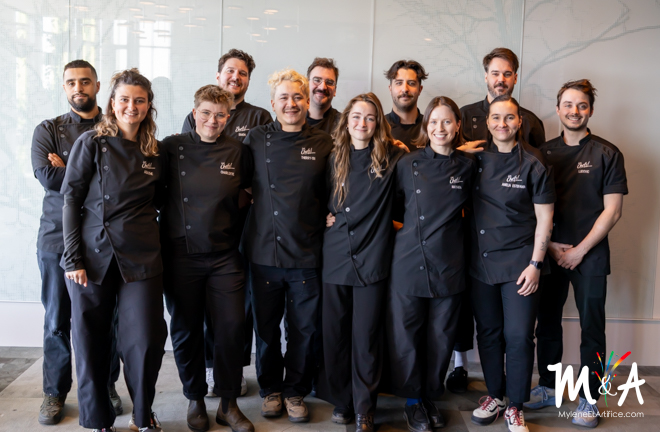 « Naturel. Subtil. Respectueux. Être chef c’est pas juste être un cuisinier. Être chef, ça part de l’humain, ça part de la gestion, ça part de plein de panoplie de choses qui sont beaucoup plus complexes que juste la nourriture. Être chef, c’est oui, bien cuisiner, mais une fois que tu as établi ton menu, il faut que tu gères tous les gens autour de toi, que tu les valorises, que tu les mettes dans des situations parfaites pour pouvoir faire ce que tu as en tête, c’est eux qui complètent, c’est eux le plus important. Donc le respect oui, assurément. »
