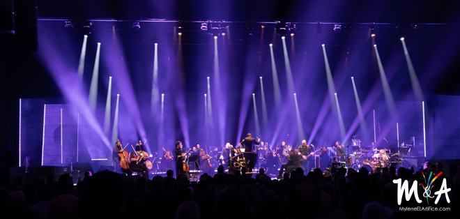 Dès que les chansons entraient dans leur pleine puissance, la balance sonore basculait systématiquement. La batterie et les guitares saturées reprenaient toute la place, reléguant les violons et autres instruments à vent au second plan. Un phénomène fréquent dans ce type de spectacle hybride : le rock amplifié domine naturellement l’espace acoustique.