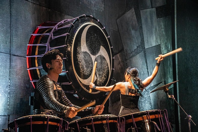 Dans plusieurs numéros, les percussionnistes sont en mouvement constant sur la scène, soit avec leur tambour Taiko, soit autour des tambours, à la course, ou dans un ballet entrecroisé de musiciens qui donnent le vertige aux spectateurs.