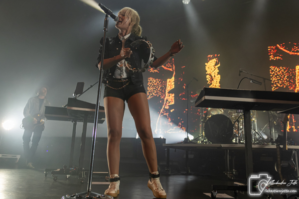 Puis ce fut au tour de Metric d’enflammer la scène avec Fantasies, un album où les lyriques doux contrastent avec des guitares bien senties. Metric est composé d’Emily Haines (voix principale, synthétiseurs, guitare, tambourin, harmonica, piano), de James Shaw (guitare, synthétiseurs, thérémine, chœurs), de Joshua Winstead (basse, synthétiseurs, chœurs) et de Joules Scott-Key (batterie, percussions). Sur Help I’m Alive, chaque « Beating like a hammer » faisait lever les bras du public. Gold Guns Girls, avec ses paroles rapides et sa guitare frénétique, a fait monter l’énergie d’un cran à mesure que l’album avançait.