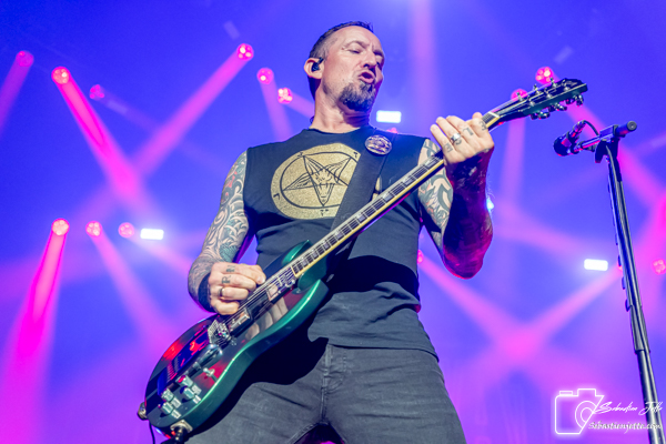 Après l’intense performance de Three Days Grace, Volbeat a pris le relais, malgré un certain nombre de départs parmi les spectateurs, laissant quelques sièges vides. Cependant, le groupe danois, avec Michael Poulsen (chant, guitare), Flemming C. Lund (guitare), Kaspar Boye Larsen (basse) et Jon Larsen (batterie), a rapidement su captiver le public restant. Le nouvel album de Volbeat s’intitule « God Of Angels Trust » qui est sorti le 6 juin 2025.